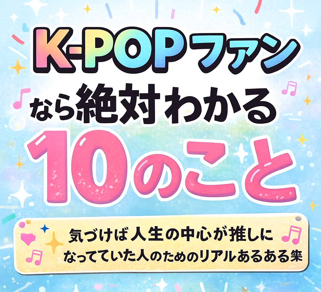 K-POPファンなら絶対わかる!推し活がもっと楽しくなる“10のあるある”徹底まとめ 公開日:2025年12月2日 韓流の推し活 K-POPファンの世界は深い。気づいたら沼の底。そして今日も通知が鳴り止まない──。 あなたもきっと「わかる…!」と頷くはずの“あるある”をまとめました! 1. 推しの写真フォルダ、気づけば数千枚 保存した記憶はある。整 […] 続きを読む
